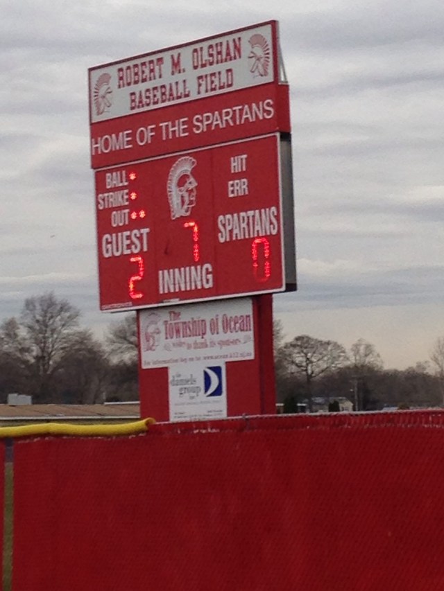 The Huskies defeat the previously unbeaten ocean the Spartans by the score of two to nothing. Starting pitcher Adam Elliot went 6 1/3 strong innings giving up 2 hits 3bb and 8 ks. Colin Thompson came in to strike out the number 2 hitter and induced a game winning DIVING CATCH by Billy Rodriguez to end the game!!