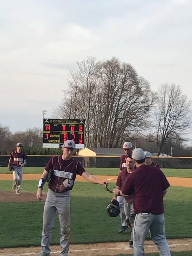 After dropping 2 games on Saturday and Monday, the Huskies bounced back in a huge way by topping SJV 8-6. Jackson Hercek pitched 4 innings in relief of John Carelli. Mike Trapani went 2-for-4 with two runs and two RBI while Tom Collazo and Jake Burlew were each 1-for-3 with two runs scored to help the Huskies (3-2, 3-1) outlast the Lancers (1-2, 1-2). The Huskies stole 5 bases and committed only one error in the win